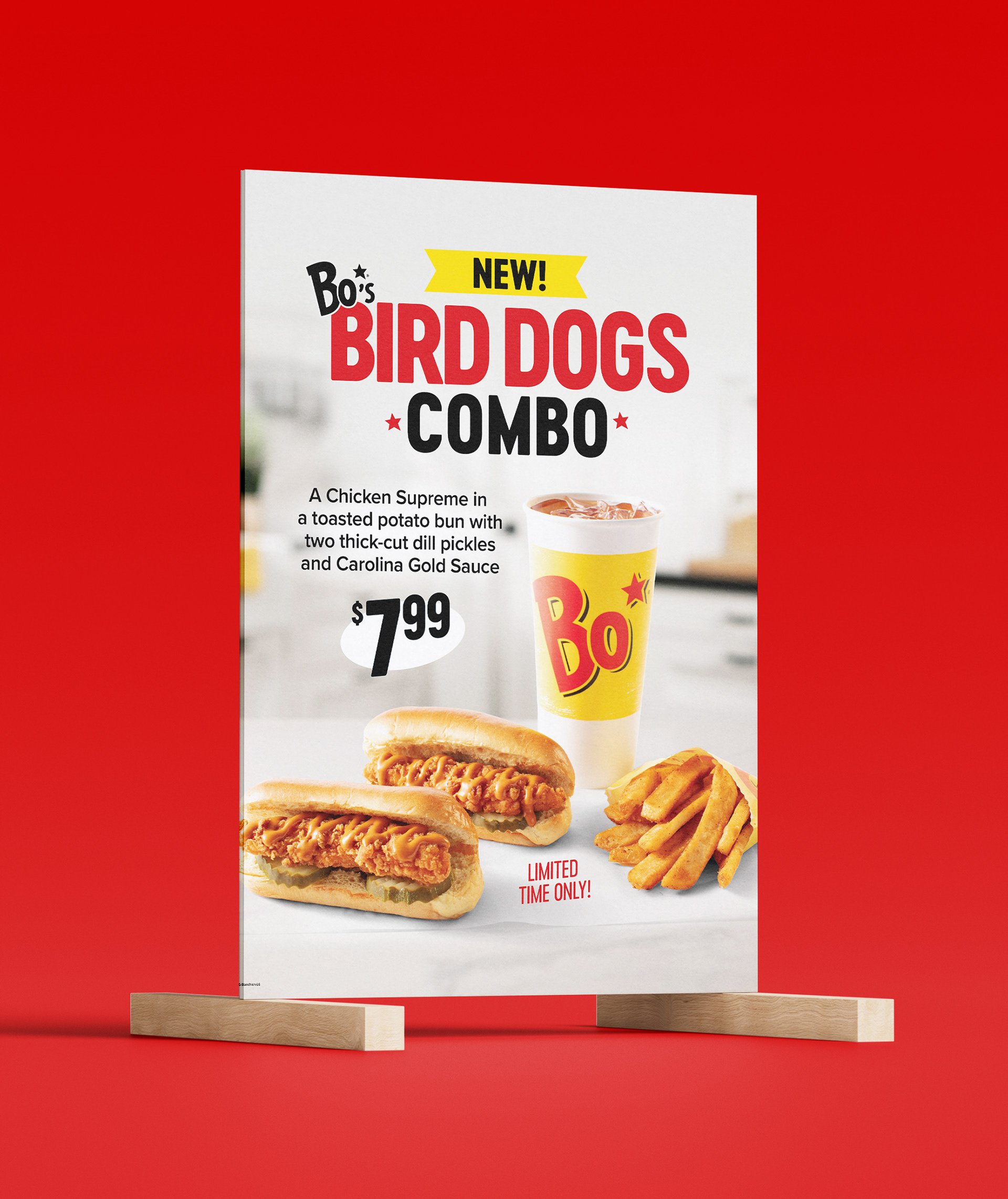 Bojangles released a new product named 'Bo's Bird Dogs'--a fun handheld chicken-dog with pickles and sauce.